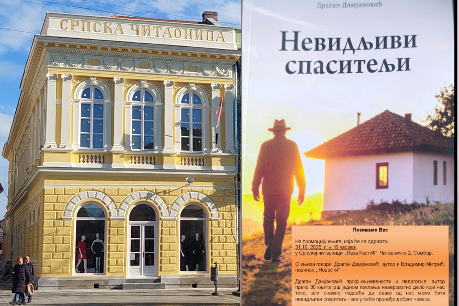 У петак, 31.10.2025. године, са почетком у 16:00 часова, у просторијама Српске читаонице "Лаза Костић", биће организована промоција књиге "Невидљиви спаситељи" аутора Драгана Дамјановића.